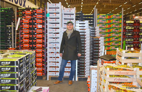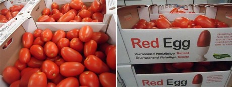 Guilhem Flammen devant la tomate Red Egg à Rungis
