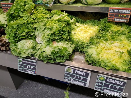 La laitue et a scarole proviennent principalement d’Espagne et sont vendues 2,99 € / kg. La laitue Iceberg est à 1 € / kg et le brocoli en provenance de France est à 2,55 € / kg.