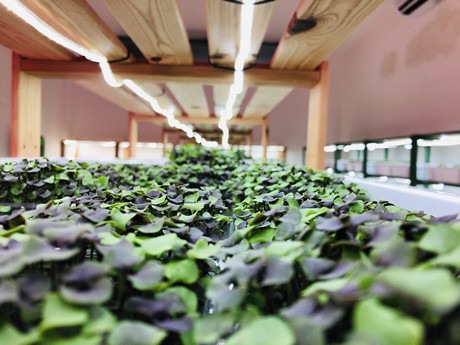 « Nous utilisons un système de culture en intérieur durable basé sur les modèles américains de culture raisonnée. La culture verticale des micro-légumes à l'intérieur se fait dans un environnement contrôlé en ce qui concerne la lumière du soleil, le taux d'humidité, la ventilation et la température. »