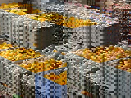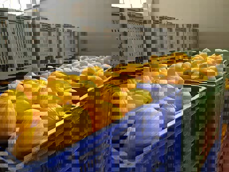 « Nous traitons et conditionnons les fruits avec des machines spécifiques que nous utilisons uniquement pour les melons jaunes. Les produits fraîchement récoltés arrivent dans des bacs, puis ils sont lavés, brossés, classés et emballés. L'emballage le plus populaire est une caisse en carton de taille 40x60 créée spécifiquement pour ces melons, mais les formats 30x40 et 30x50 sont également disponibles. »