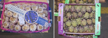 Deux spécialités françaises : ail rose de Lautrec à gauche et artichauts de Bretagne à droite.