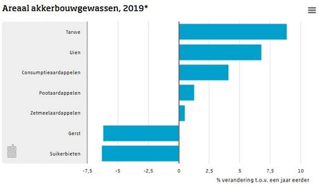 Selon le dernier recensement agricole d'avril 2019, les cultures arables sont cultivées sur 536 000 hectares aux Pays-Bas. C'est 4 % de plus qu'il y a un an.