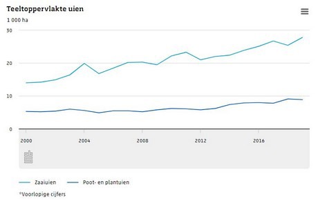 La production d'oignons et de pommes de terre a augmenté en 2019. Par rapport à l'année précédente, la superficie des oignons a augmenté de près de 9 et 7 % et celle consacrée aux pommes de terre a augmenté de plus de 2 % en un an. Ceci d'après les résultats préliminaires du recensement agricole de 2019 de Statistics Netherlands.