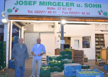 Au sein de l'entreprise familiale Mirgeler, père et fils gèrent ensemble leur stand de vente au détail. Malgré son âge, le père est toujours attaché au marché de gros : « 3 000 personnes se retrouveraient au chômage si le marché de gros fermait. Ça ne doit pas se produire ! La jeune génération du site de Cologne-Radeberg pense également à l'avenir du marché de gros », explique Marcel Jeleniowski, qui dirige la société du même nom avec sa mère. « Je préfère les zones où les autres sociétés sont également représentées, afin que les clients privés puissent également s'y rendre. Le marché de gros pourrait ainsi devenir plus audacieux dans certains endroits », explique le jeune commerçant.