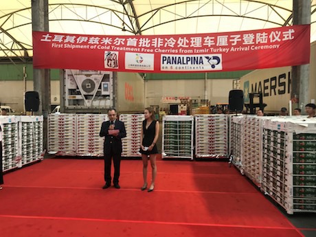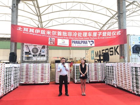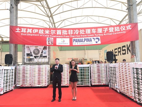 Aujourd'hui (8 juillet), les cerises d'Izmir en Turquie ont fait leur entrée au marché Huizhan de Shanghai, où une cérémonie a eu lieu. Ces cerises ont été importées par Shenzhen Kingship Co Ltd, un importateur de produits alimentaires haut de gamme chinois, et transportées par Panalpina, un géant maritime mondial, sans subir de traitement au froid avant leur exportation vers la Chine.