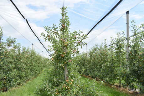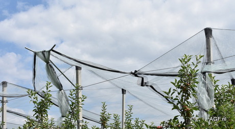 Les systèmes de protection contre la grêle sont de la marque Valente et sont importés d'Italie. « Bien qu'il y ait un coût important lié à l'achat des filets, il n'est pas possible de les éviter dans certains cas. Les conditions météo deviennent de plus en plus extrêmes, ce qui augmente les risques de grêle. Il y a des zones qui y échappent, mais il y a aussi celles qui sont touchées chaque année. La culture sous filets est même nécessaire pour certaines variétés, comme la Magic Star. Les filets anti-grêle ne servent pas seulement à prévenir les dommages causés aux divers arbres fruitiers qui peuvent être cultivés , ils empêchent aussi les fruits de brûler au soleil », explique Jack Hermens.