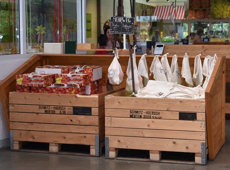 Lors du choix des sacs recyclables pour ses activités marketing, il a dû choisir entre un sac en pur coton et la version Kiwi Media avec le polyester. « Le filet permet de voir les marchandises de l'extérieur, ce qui facilite les transactions à la caisse enregistreuse ». Même les moustiquaires en plastique ont été testées, mais le directeur n'était pas satisfait de leur qualité. « Nous vendons principalement des aliments lourds comme les pommes de terre, les pommes et les poires. Pour nous, ces filets devaient pouvoir contenir 3 kilos ». Après un an de recherche d'un sac adapté, il a finalement trouvé une solution. Les sacs en coton de Kiwi-Media sont très stables et le cordon avec lequel ils peuvent être fermés simplifie encore le transport, selon Schmitz-Hübsch.