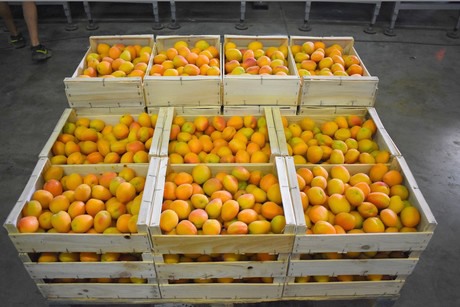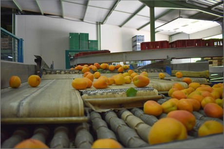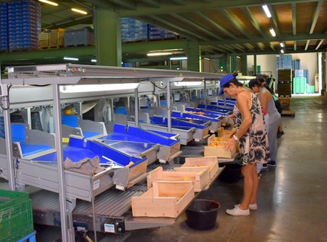 Les abricots passent ensuite par la calibreuse où ils sont triés à la main