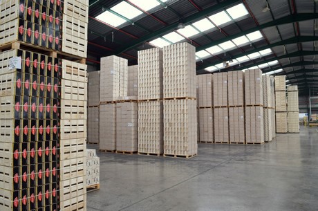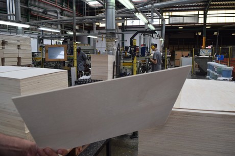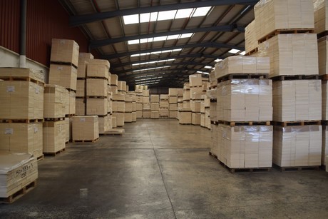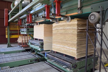 Des feuilles de contreplaqué pour l’élaboration de caisses en bois, stockées dans le plus grand centre de production d’Europe visité par FreshPlaza.
