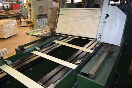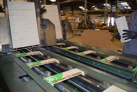 Les feuilles minces (en haut) sont utilisées dans la fabrication de feuilles de contreplaqué pour les boîtes (en bas).