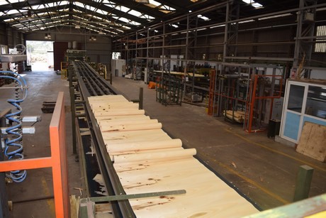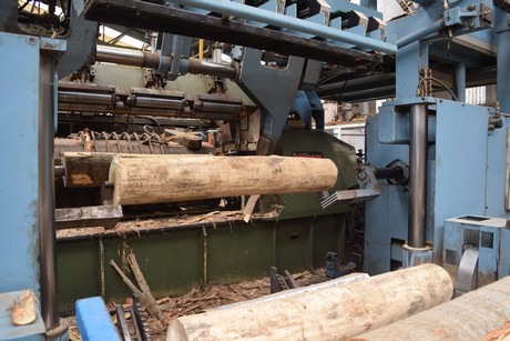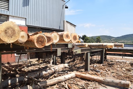 C'est ici que commence la fabrication : des rondins de peuplier entrent dans la scierie.