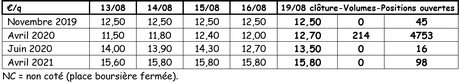 EEX à Leipzig (€/q) Bintje, Agria et var. apparentées pour transfo, 40 mm+, min 60 % 50 mm + :