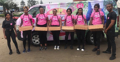 Les six promoteurs de marque avec deux ambassadeurs de marque lors du lancement du marché Pink Lady® à Lagos.