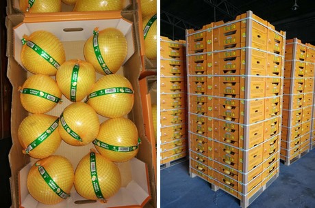 « Le marché étranger a des normes strictes pour l'importation de pomelos. Ceux que nous exportons doivent passer les tests de résidus de pesticides SGS et de métaux lourds. Le pomelo reste frais pendant environ 60 jours à une température d'environ 5°C. Pour protéger la qualité de nos produits, nous utilisons des emballages respectueux de l'environnement. De plus, les pomelos sont protégés par un filet et enveloppés dans un ruban coloré avec un code barre. Nous utilisons également des boîtes en carton standardisées et expédions nos pomelos dans des conteneurs réfrigérés. »