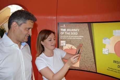 En scannant un code QR dans la tomate, les visiteurs sont emmenés en voyage. Ils suivent tout le processus de ce qu'il se passe avant qu'un plant de tomate ne soit finalement cultivé. « C'est un voyage que même les producteurs ne connaissent pas forcément », déclare Franky. « Ils commandent un jeune plant de tomate et ne savent pas exactement ce qui l’a précédé. C'est ce que nous voulons que les gens voient. La transparence devient de plus en plus importante, également en raison de la pression croissante des parasites et des virus. »