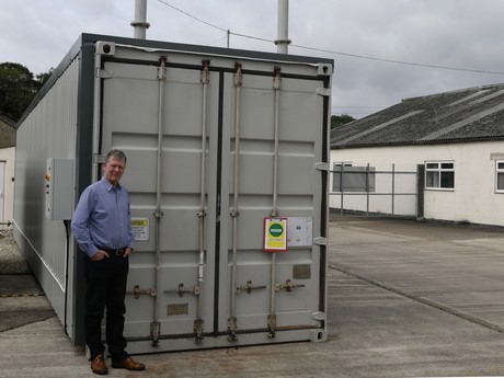 Phil Pearson, directeur du développement du groupe APS, devant le conteneur à vapeur conçu et fabriqué par CambridgeHOK.
