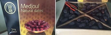 Il existe deux façons de profiter des bienfaits des dattes Medjoul. Il y a deux types de dattes. « La première est sèche, son taux d'humidité est d'environ 25 % », explique-t-il. « Il y a un autre type, celles-ci sont cueillies et emballées individuellement. C'est la même datte, mais c'est ce que nous appelons la Medjoul fraîche ou « Bonbon », elles sont traitées de manière totalement différente. Vous avez aussi deux variétés de Bonbon - Bonbon Blue et BonBon Black. »