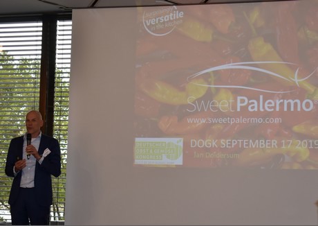 Le premier intervenant était Jan Doldersum - responsable de la chaîne et du commerce de détail de la société de sélection Rijk Zwaan. Il a présenté les nouvelles tendances autour de la marque Sweet Palermo, qui a également acquis au fil des ans une place de choix sur les étals : « Au cours du processus de sélection, nous nous concentrons sur trois piliers : le goût, la polyvalence et la commodité. Une large gamme de variétés pour tous les goûts, mais aussi plusieurs concepts de vente de différentes couleurs. »