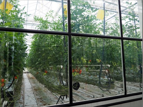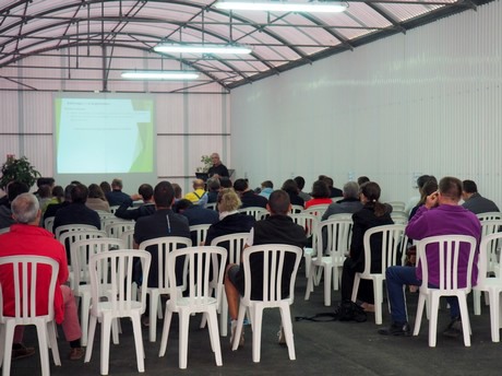 Après avoir accueilli les invités, Eric Brajeul – Directeur du Centre Opérationnel de Carquefou – Serge Le Quillec – Ingénieur d’expérimentation responsable du programme techniques culturales sous serres à l’unité serre de Carquefou – et Emilie Legast – ingénieur de recherche –, ont invité les participants à découvrir les serres et les essais menés sur la culture de concombres et une dizaine de variétés de tomate toutes résistantes à l’oïdium. Ce fut également l’occasion de présenter le biogénérateur (partenariat avec la société Divatec), système novateur qui se présente sous forme d’une colonne filtrante dans laquelle des conditions favorables au développement de bactéries bénéfiques pour les plantes sont créées. Une innovation qui permet d’approcher une gestion intégrée de la nutrition.