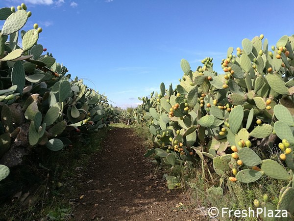 La chaîne de production de figues de barbarie compte environ 4 000 hectares de culture, avec une production de 70 000 tonnes par an. Les zones les plus importantes sont celles du figuier de Barbarie de l'Etna et de San Cono en Italie ; en effet elles couvrent à elles seules 60 % de la surface régionale totale.