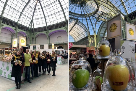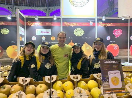 Afin de promouvoir et de communiquer sur la marque et les différentes variétés de pommes vendues par Mouneyrac Frères, une partie de l’équipe, trois des partenaires du grossiste, deux MOF, une responsable qualité, une ingénieure agronome et 5 vendeuses ont animé le stand pendant ces trois jours : « Nous avons vraiment eu énormément de visiteurs. A un certain moment, nous étions 15 sur le stand pour présenter les produits. Perlim, partenaire emblématique de Mouneyrac Frères puisque cela fait plus de 50 ans que nous travaillons ensemble, était avec nous pour présenter la Golden du Limousin AOP. Il y avait également Pink Lady pour la promotion de la variété, et Mylord pour le lancement de la Swing, nouvelle variété de pomme bio 100 % française ».