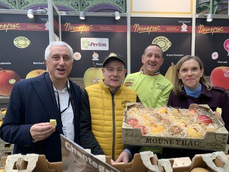 Afin de promouvoir et de communiquer sur la marque et les différentes variétés de pommes vendues par Mouneyrac Frères, une partie de l’équipe, trois des partenaires du grossiste, deux MOF, une responsable qualité, une ingénieure agronome et 5 vendeuses ont animé le stand pendant ces trois jours : « Nous avons vraiment eu énormément de visiteurs. A un certain moment, nous étions 15 sur le stand pour présenter les produits. Perlim, partenaire emblématique de Mouneyrac Frères puisque cela fait plus de 50 ans que nous travaillons ensemble, était avec nous pour présenter la Golden du Limousin AOP. Il y avait également Pink Lady pour la promotion de la variété, et Mylord pour le lancement de la Swing, nouvelle variété de pomme bio 100 % française ».