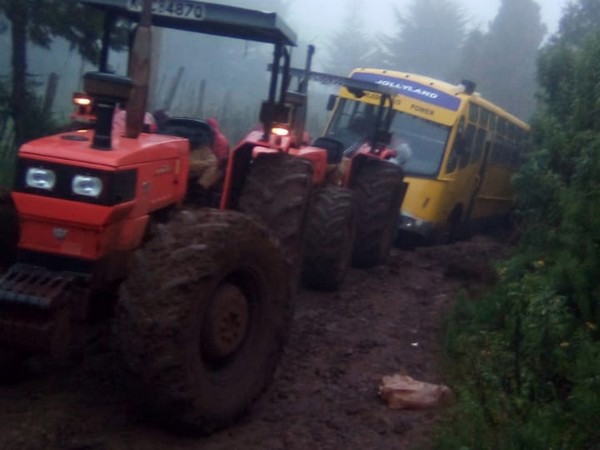 Les autobus de travailleurs tirés par des tracteurs pour se rendre sur les lieux.