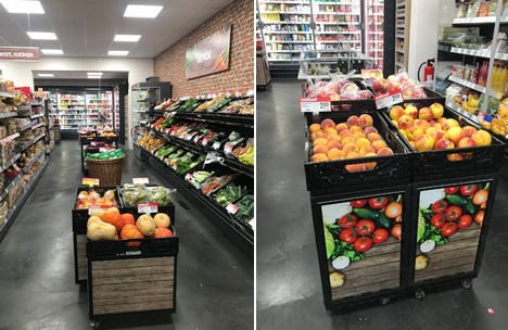 Le présentoir peut être équipé de différents accessoires, selon les souhaits du client et le produit à commercialiser. Le panier métallique, par exemple, est particulièrement adapté aux agrumes et aux melons, tandis que les noix et les produits Pick&Mix sont plus susceptibles d'être présentés dans des boîtes en plastique. « Nous avons également des inserts spéciaux pour les caisses Ifco et EPS. Dans de nombreux supermarchés modernes, le flux de marchandises est principalement concentré sur le week-end. Les jours où vous vendez moins, vous n'avez en fait besoin que de petites quantités au lieu de caisses entières au point de vente. Les inserts garantissent que les rayons sont pleins, même avec de petites quantités, sans que le surplus de marchandises ne s'abîme ».