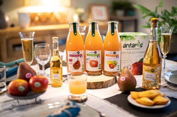 La pomme Antarès® était la première variété française certifiée 100 % Vergers Écoresponsables. Elle se décline aujourd’hui en jus plats mais également en version pétillante à siroter en solo via sa bouteille en verre individuelle ou à plusieurs via son format de 75cl. Quant à la poire Sweet Sensation®, elle se cultive sur les terres françaises depuis 2014 grâce au Verger de la Blottière.