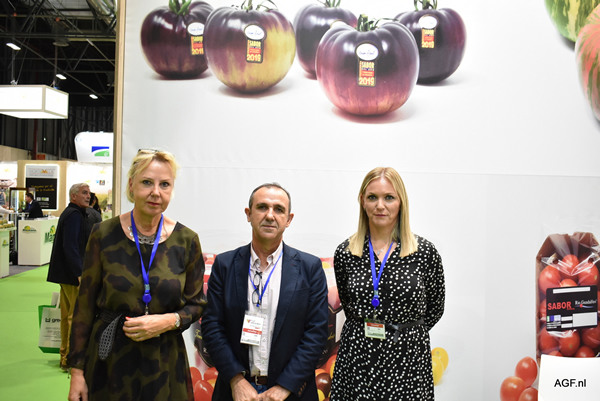 Ellen van Kester, Pepe Lorente, et Patricia Gomzez d'Horticola Guadalfeo au Fruit Attraction.