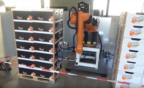 L'année dernière, au salon Fachpack de Nuremberg, la société AKON Robotics a présenté une application pour l'étiquetage automatique des palettes avec des étiquettes adhésives. Cette solution hautement automatisée est jusqu'à présent unique dans l'industrie et est déjà utilisée dans le secteur des fruits et légumes, d'après Thomas Bloch, directeur général d'Akon.