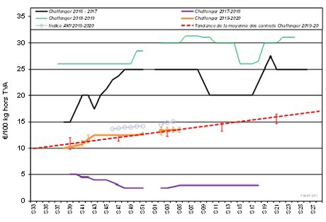 A l’export par contre, les prix sont de plus en plus discutés et les volumes vers l’Est et le Sud de l’Europe sont faibles. L’Angleterre n’est actuellement pas demandeuse.