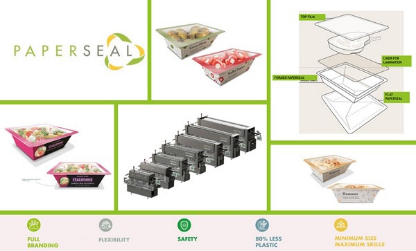 Le Paperseal est fabriqué à partir de carton, qui est formé en un plateau MAP et est muni d'une feuille (liner) avec barrière.