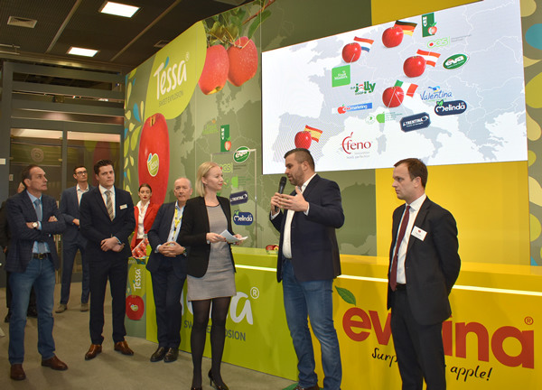 La nouvelle variété Tessa a été présentée au Fruit Logistica à Berlin. Tout d'abord, un coup d'envoi européen a eu lieu avec tous les partenaires européens, puis FruitMasters, en tant que producteur pour le marché néerlandais, a présenté la pomme lors d'un événement spécial à ses clients néerlandais.