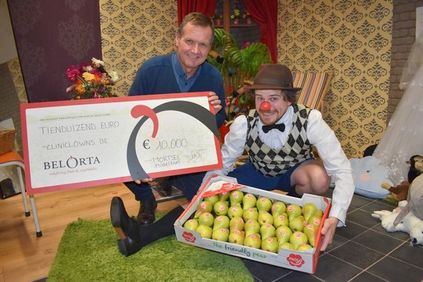 Etienne fait don d'un chèque à CliniClowns Belgique