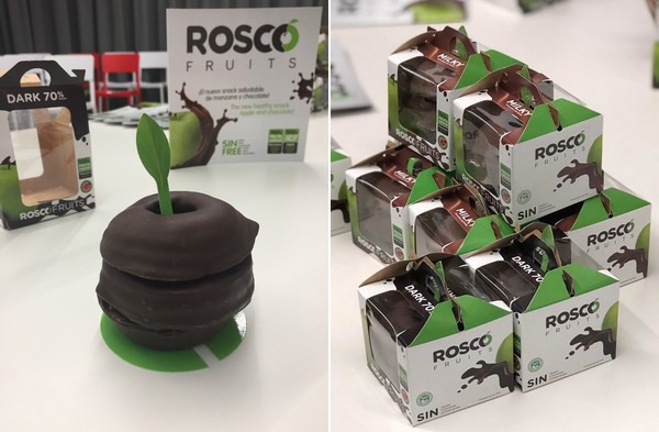 L'entreprise familiale Alpicat, qui se consacre à la production de fruits, a présenté un projet novateur dans lequel une pomme de Lleida sélectionnée et de grande taille (80-85) finit par devenir trois mini-donuts enrobés de chocolat.