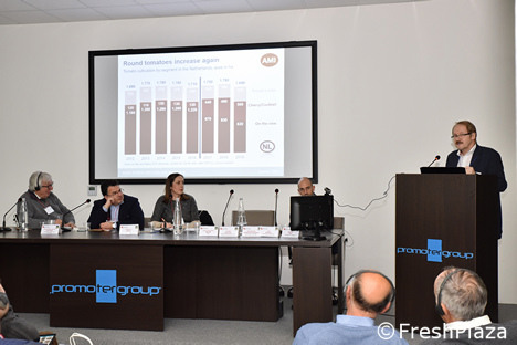 Hans-Christoph Behr, de l'agence allemande d'études de marché Ami, a examiné la situation sur le marché européen et a donné un aperçu des principaux pays producteurs, exportateurs et importateurs de tomates fraîches.