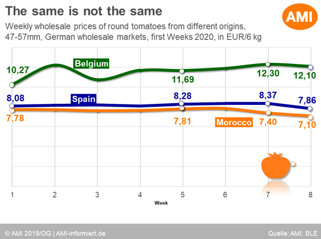 Quant aux prix des tomates fraîches sur le marché européen, ils ont tendance à être plus stables que ceux des autres légumes. En outre, un même produit peut avoir un prix différent selon son origine : ce n'est pas tant une question de qualité que d'image du fournisseur (réputation).