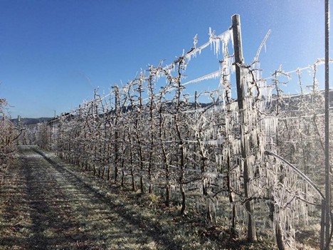 Les températures ont chuté bien au-dessous de zéro dans le Val di Non et le Val di Sole également, à tel point que quelques producteurs ont activé leurs systèmes anti-gel. « Mais personne n'a activé les systèmes dans ma région. À Sanzeno, dans le Val di Non, à 700 mètres d'altitude, le développement des vergers de pommes en est encore à ses débuts. Nous n'avons enregistré aucun dommage, mais je suis sûr que d'autres régions ont dû activer leurs systèmes », rapporte Fabrizio Zadra.