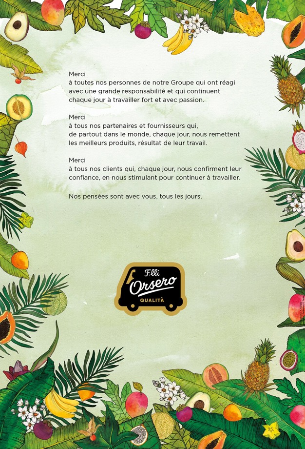 Dans l’actuelle situation d'urgence due à la pandémie de Covid-19, le Groupe souhaite partager avec les lecteurs de FreshPlaza et avec tous les opérateurs professionnels du secteur des fruits et légumes ses sincères remerciements aux salariés, partenaires et clients, avec cette lettre, que nous rapportons dans son intégralité :