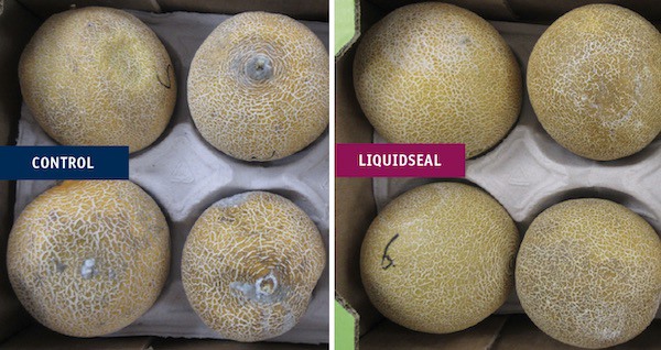 Dans un essai, les melons traités avec Liquidseal ont surpassé le groupe de contrôle en maintenant leur fermeté à 6,69 kg/cm² contre 2,81 kg/cm². « La formule actuelle s'avère également fonctionnelle sur les melons et a permis de réduire la perte de poids de 2,61 %, ce qui représente une réduction globale de la perte de poids d'environ 24 % », explique M. Monster. Le produit sera introduit là où les melons sont produits, comme en Afrique, en Asie et en Amérique du sud et centrale.
