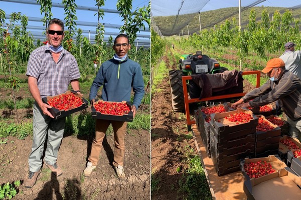 « Nous cultivons des fruits rouges, des fruits de premier choix et des fruits à noyau ici au Maroc », explique Martino Ferreira, agronome dans l'entreprise. « Nous avons 5 ha de cerises dans un verger à haute densité, c'est la première saison, donc les volumes sont faibles, mais nous espérons les augmenter au fur et à mesure. En raison du microclimat, la couleur est très bonne ici. Les cerises sont cultivées en plein air et l'hiver plus froid nous donne de bonnes conditions pour les cerises ainsi que pour les pommes et autres fruits à noyau ».