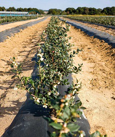 Certaines des myrtilles - une nouvelle génétique de MBO Australie - sont plantées en utilisant du substrat dans des pots et certaines sont en plein champ, sur un site où les fleurs étaient auparavant cultivées pour l'exportation.