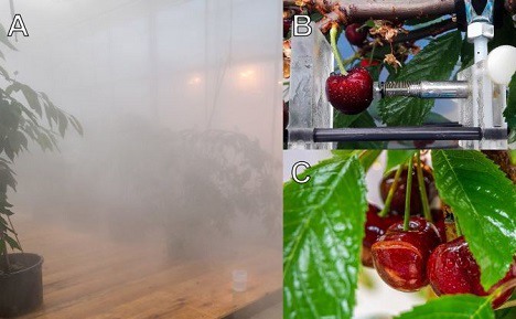 Le craquement de la pluie limite la production de cerises douces dans le monde entier. La fissuration est souvent évaluée par des tests en laboratoire, où les fruits détachés sont immergés dans l'eau. Les scientifiques de l'université Leibniz de Hanovre ont comparé la fissuration des fruits détachés qui ont été submergés dans l'eau à celle des fruits qui restés attachés à l'arbre mais exposés à une pluie simulée ou à des fruits détachés, placés dans une cage métallique et exposés à une pluie simulée. Pour l'étude, l'absorption d'eau et la fissuration ont été déterminées dans les fruits détachés et attachés.