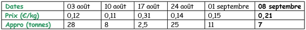 En période de départ champs, il faut retirer 1,00 €/q à ces prix pour frais de triage