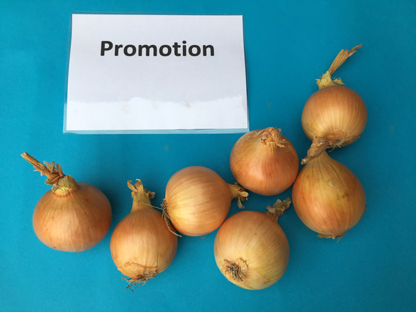 « La variété Promotion a été introduite l'année dernière. Elle est donc disponible dans le commerce cette année. Nous avons planté ces oignons de manière relativement étendue sur environ 250 hectares à travers les Pays-Bas. La variété Promotion est une variété mi-précoce, et nous l'avons positionnée pour une culture en argile. Mais c'est un oignon très complet. Il est issu de la ligne Motion ».