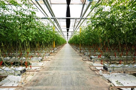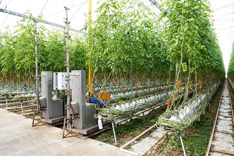 « Un logiciel contrôle l'ensemble de la gestion des processus de culture en surveillant le système depuis la fertirrigation jusqu'à l'ouverture et la fermeture des fenêtres latérales et supérieures. Le chauffage est assuré par des tuyaux où circule de l'eau chaude et qui servent de rails pour les chariots élévateurs ».