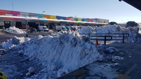 « A partir d'aujourd'hui, grâce au formidable travail de l'unité militaire d'urgence de l'UME, nous avons pu développer une activité presque normale. Je dis presque, car bien que la neige ait été enlevée des principales artères du Mercamadrid, la glace est restée, en raison des températures d'hier et d'aujourd'hui, entre 2ºC et -11°C », explique Antonio Montes.