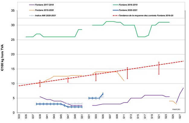 Marché du frais : le niveau de vente en (grande) distribution se maintient très correctement pendant ces périodes de confinement partiel, ce qui permet de conserver les niveaux de prix déjà d’actualités en décembre.