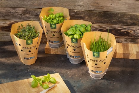 Herbes aromatiques en pot dans un emballage compostable / Image : NORMA